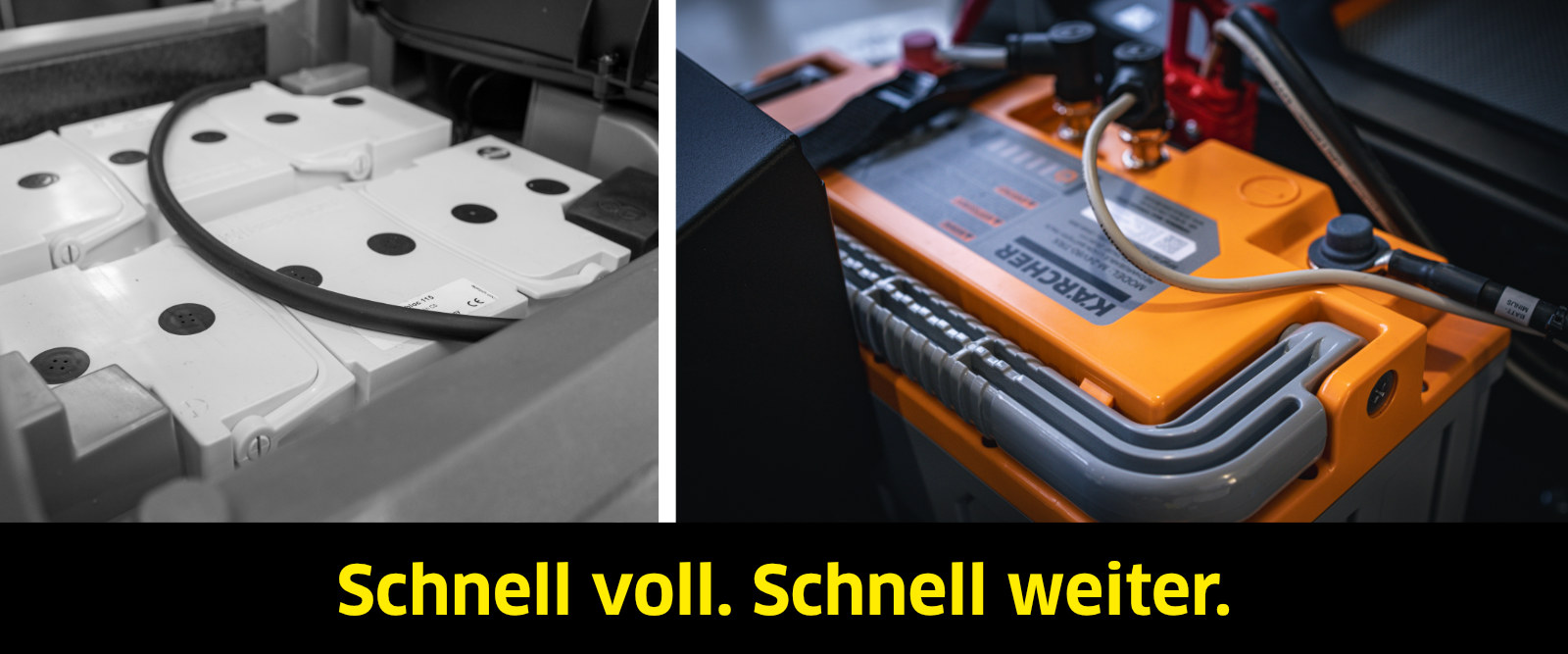 Und wenn es schnell gehen muss, gibt es passende Ladelösungen: Mit optionalem Schnelllader ist ein kompletter Ladevorgang laut Kärcher in etwa 2 Stunden möglich. Das macht die Technik besonders interessant für hohe Flächenleistung, wechselnde Einsatzzeiten oder Mehrschichtbetrieb.