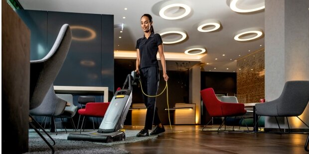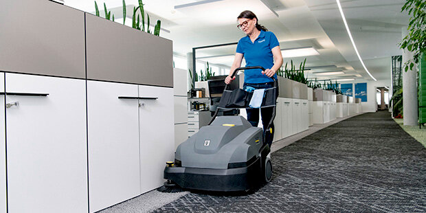Teppichkehrsaugmaschinen von Kärcher verbinden die gründliche Reinigungskraft eines Teppichbürstsaugers mit einer sehr großen Flächenleistung auf unverstellten Flächen. Ob in Bürogebäuden, Hotels, Konferenzgebäuden, auf Flughäfen oder Tennisplätzen, in Kinos oder Kasinos.